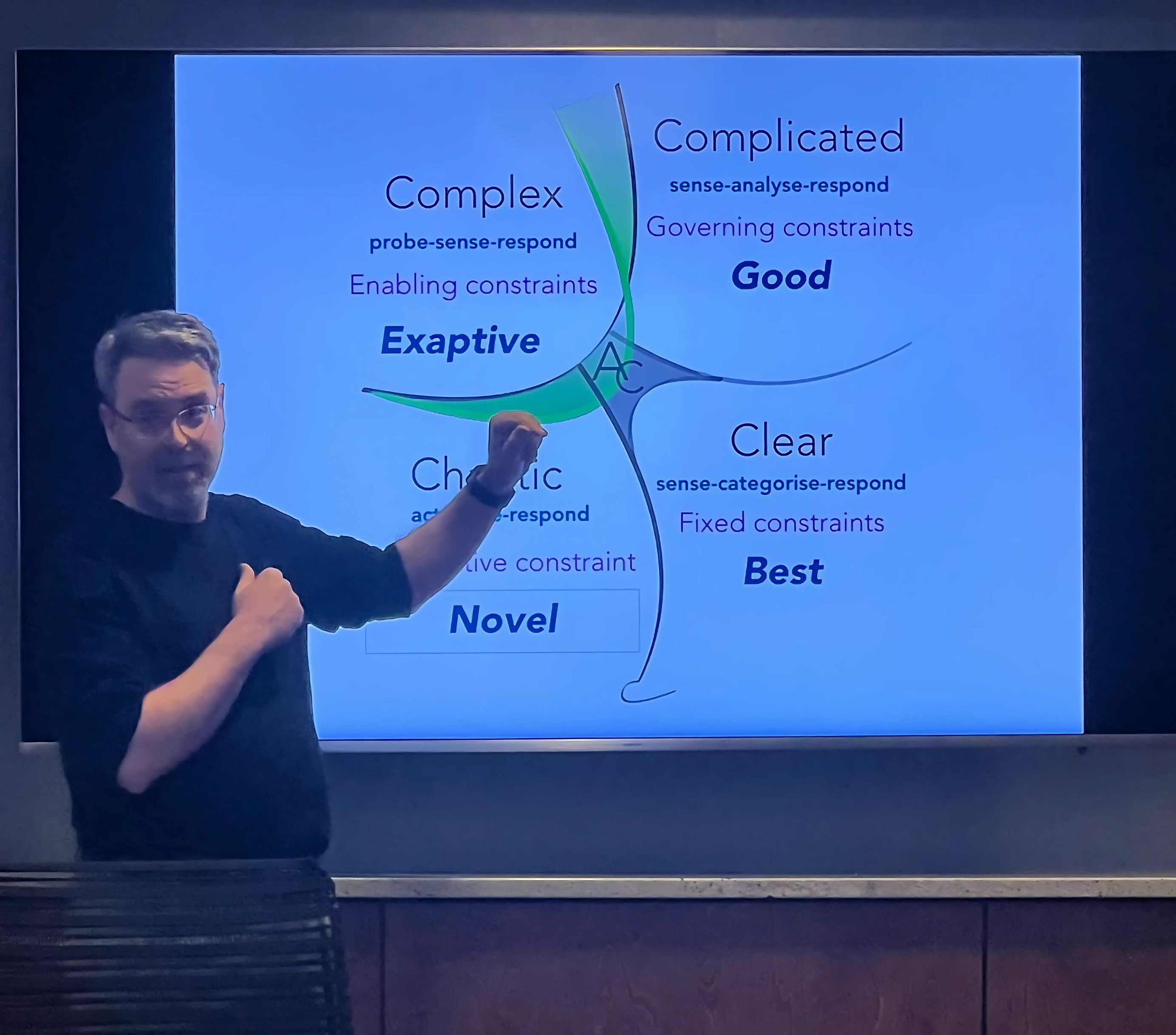 The Physicians Leadership Academy welcomed Chris Corrigan, our PLA master teacher on Complexity Theory, to lead an insightful session that deepened our understanding of complexity and its practical applications for tackling the most challenging issues we face as leaders. Chris shared valuable theoretical insights and equipped us with actionable tools to apply in real-world scenarios.