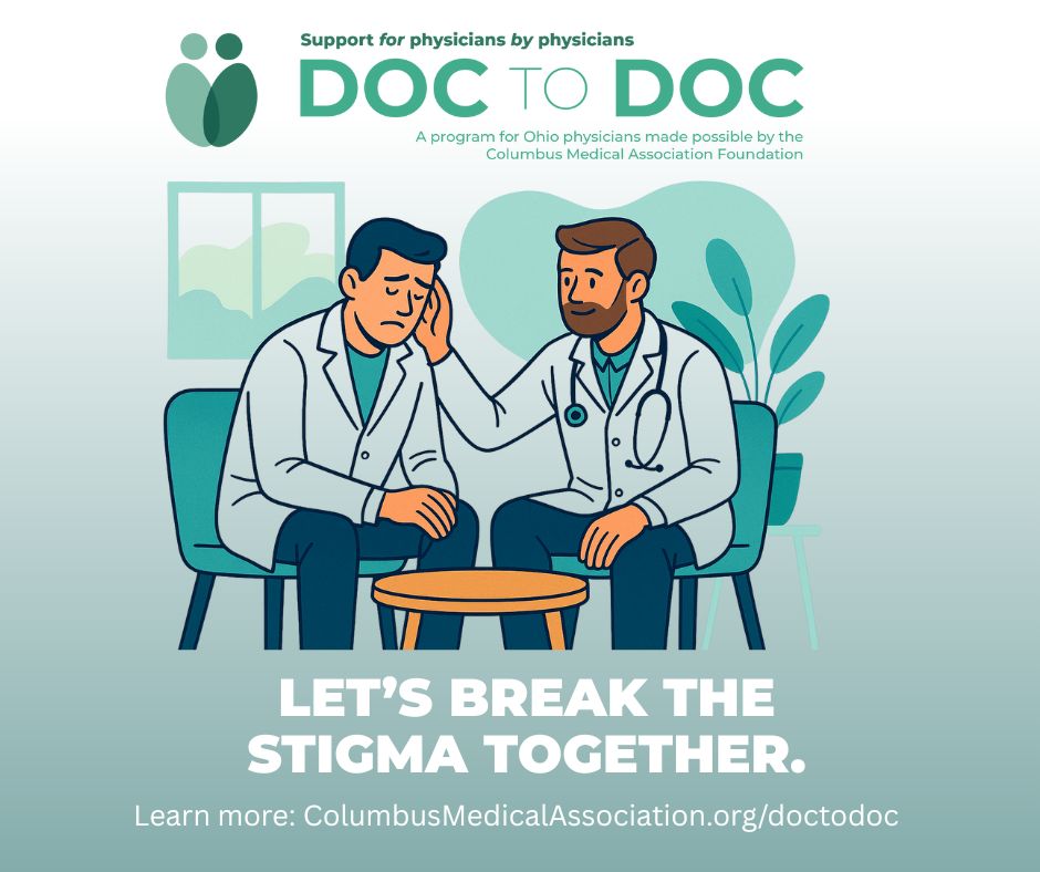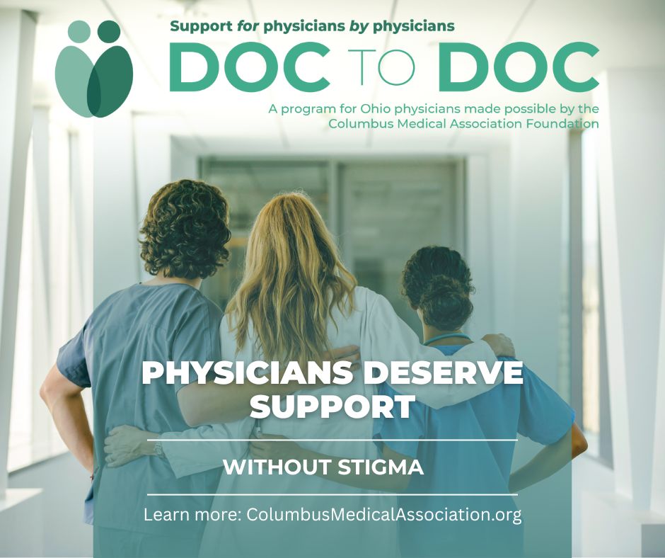 The Doc to Doc Peer Support program is designed to provide access to an empathetic network of physician peers who have been professionally trained to support colleagues in need. The goal is to ensure Ohio physicians feel emotional and psychological support from those who have walked in their shoes. All participation in the Doc to Doc peer support program is confidential, free, and completely voluntary. Doc to Doc is supported by the Columbus Medical Association Foundation. Click here to connect with the Peer Support program to refer yourself or a colleague. Newsletter/Internal Channels Message:The Doc to Doc Peer Support program is designed to provide access to an empathetic network of physician peers who have been professionally trained to support colleagues in need. The goal is to ensure Ohio physicians feel emotional and psychological support from those who have walked in their shoes. All participation in the Doc to Doc peer support program is confidential, free, and completely voluntary. Doc to Doc is supported by the Columbus Medical Association Foundation. Click here to take the first step to feeling supported and understood.